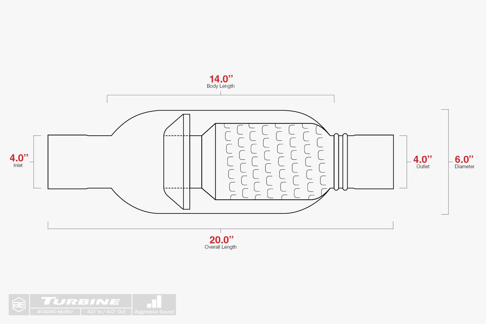 The Aero Exhaust AT4040 Aero-Turbine Performance Muffler provides your truck with a deeper, more aggressive exhaust sound. The AT4040 is the only performance muffler that will give you the performance of a full system without breaking the bank. This Muffler is designed for high-output diesel engines and features a patented airfoil technology that increases horsepower, torque, flow and also reduces temperatures.